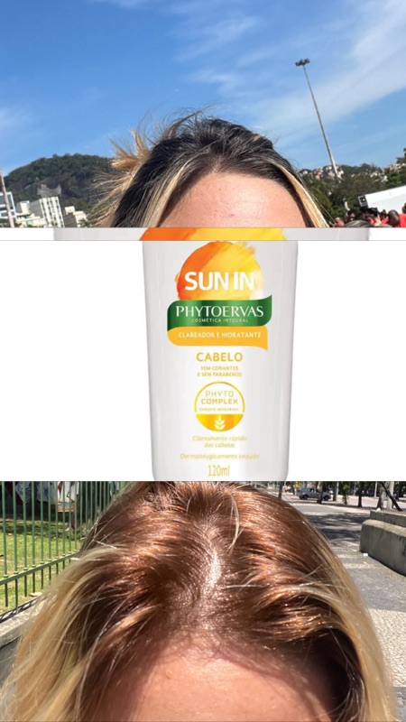 Eu já vinha testando tonalizantes, luzes, descolorações… e, como toda mulher que já mexeu demais no cabelo sabe, tem uma hora que a gente quer algo mais leve, prático e que dê aquele “up” natural no visual. Foi aí que decidi testar o Sun In Phytoervas.